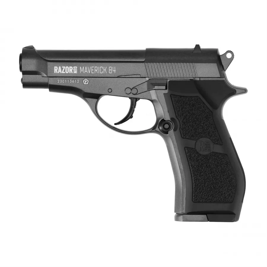 • A RazorGun Maverick egy az olasz Beretta M84 pisztoly mintájára készült légpisztoly. CO2 patronnal működik, 4,5 mm-es BB lövedékeket lő ki egy 20 BB-s tárból. Standard DAO elsütőbillentyű, biztonsági kapcsoló a véletlenszerű lövések elkerülésére. Teljesen fém kivitel.
