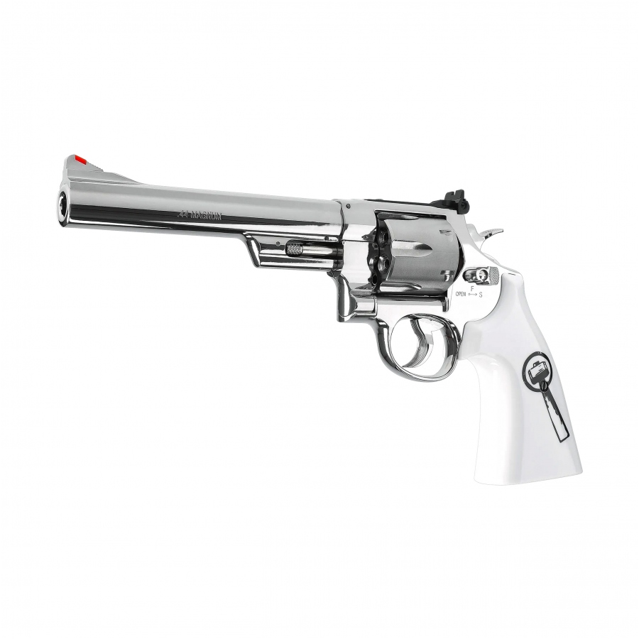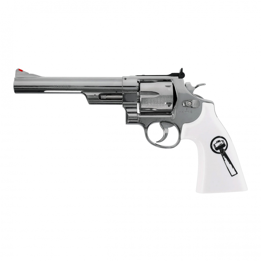 A Smith&Wesson 629 "Trust Me" revolver a legendás revolver hűséges másolata. A revolver 4,5 mm-es Diabolo (ólom) lövedékkel működik. A modell tökéletesen replikája a Smith & Wesson revolvernek, lenyűgözően ötvözve a klasszikus vonalakat a modern technológiával, valamint a markolat tematikus gravírozásával. A revolver jellegzetes jellemzője, hogy shellekkel töltheti be, amelyek hasonlítanak a valódi lőszerre. Egy 12 grammos CO2 kapszula a markolatban található, és felelős a fegyver működéséért. A sűrített szén-dioxid megadja a megfelelő sebességet a lövedéknek. A lövések száma nagyrészt a levegő hőmérsékletétől, és a megfelelő karbantartástól függ. Azt is meg kell jegyezni, hogy egy szúrt CO2-patron legfeljebb 24 órán át maradhat a replikában.