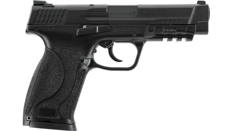 A légpuska rajongók örömmel fedezik fel ugyanezt a minőséget a 4,5 mm-es változatban is. Az M&P45 M2.0 egy gyakorlatban bevált, 8 töltényes forgótárral rendelkezik a kétrészes szánban, a huzagolt cső pedig nagyfokú pontosságot biztosít. Az energiát a markolatban található 12 g-os CO₂ patron biztosítja. A Picatinny sín opcionális tartozékokat is képes befogadni, és autentikus méreteinek köszönhetően ez a légpuska bármilyen szabványos tokba elfér. A dobozban 2 tár található.