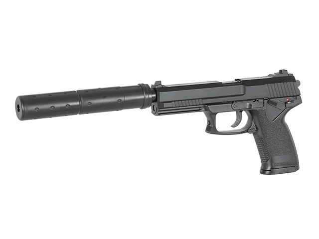 Az ST23 egy CO2 Non-Blowback (NBB) pisztoly, teljes egészében műanyagból készült, így gazdaságos, tartós és csendes választás, ideális kezdőknek. Hosszú belső csővel és egy precízen állítható Hop-Up rendszerrel rendelkezik, amely a replika szánjának a tetején helyezkedik el, ami ritka ilyen replikáknál, lehetővé téve a pontos lövéseket hosszabb távolságokról. A tár 28 lövedéket képes befogadni, így hosszabb lövészetet tesz lehetővé gyakori újratöltés nélkül. Az STT ST23 pisztolyát az alacsony zajszintje megkülönbözteti, ami népszerűvé teszi diszkrét taktikai műveletekhez. Ez az STT ST23 másolata egy hangtompítóval érkezik, amely nemcsak lenyűgöző megjelenést ad neki, hanem szükség esetén teljes diszkréciót is biztosít. Ezen túlmenően ez a hangtompító belső csővel van felszerelve, amely felszerelve lehetővé teszi, hogy a pisztoly akár 50 méter hatótávolságot is elérjen.