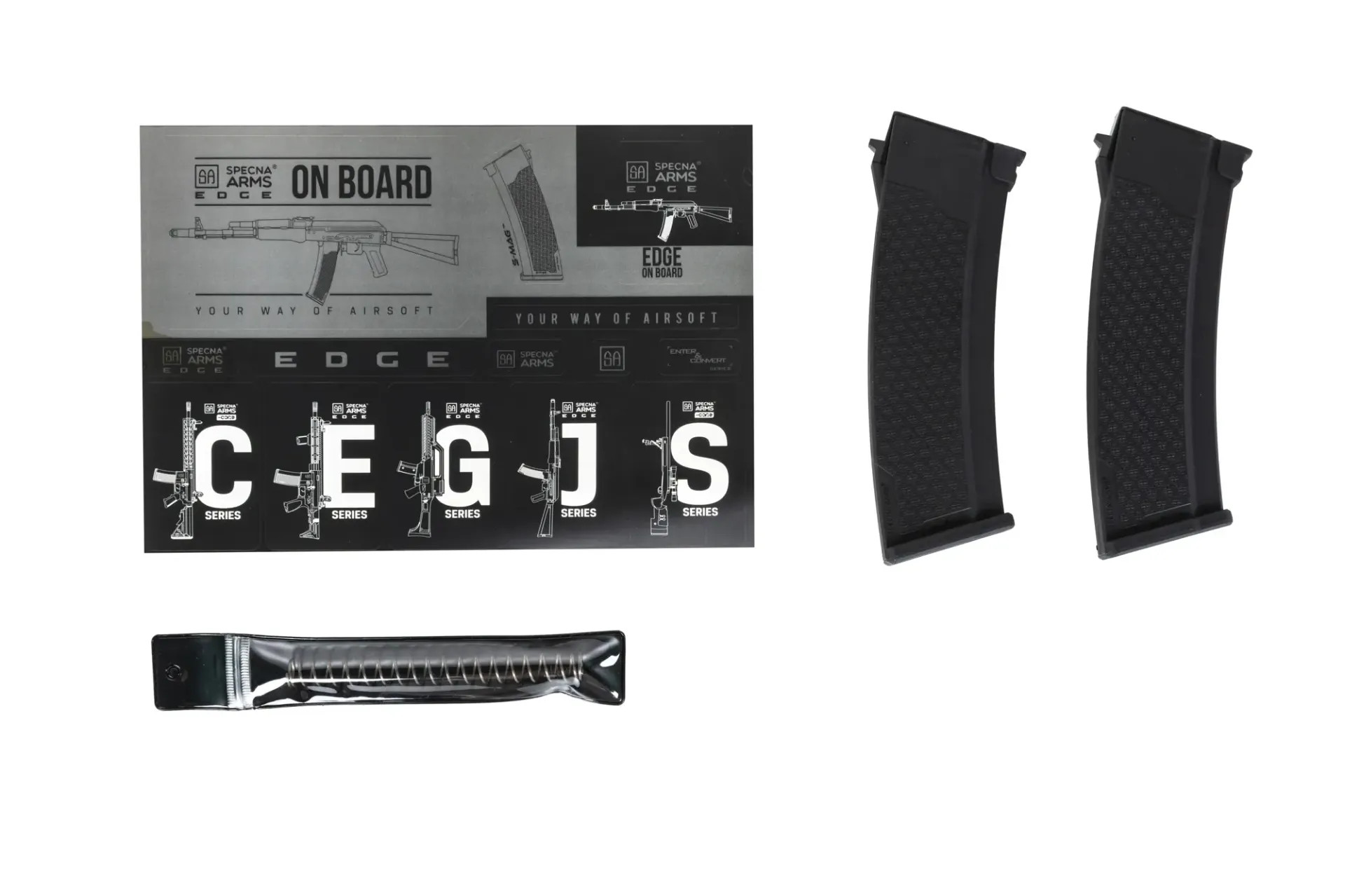A bemutatott replika csak félautomata tűzüzemmódot használ. Nincs soros/teljes automata tüzelési képességAz EDGE™ egy Specna Arms replikák sorozata, amely olyan megoldásokat és technológiákat ötvöz, amelyeket más piacon nehéz megtalálni. Ez egy olyan termékvonal, amely egyszerre a nagyon jó külső kidolgozottságra, a replika sokoldalúságának növelésére, élettartamának meghosszabbítására, a meghibásodás diagnosztizálásának megkönnyítésére, valamint a teljesítményhangolásra való érzékenységre összpontosít.Azonnal dobozból kapsz egy másolatot, amiben nem kell módosításokat végezni, de ha akarod – fantasztikusan könnyű lesz.