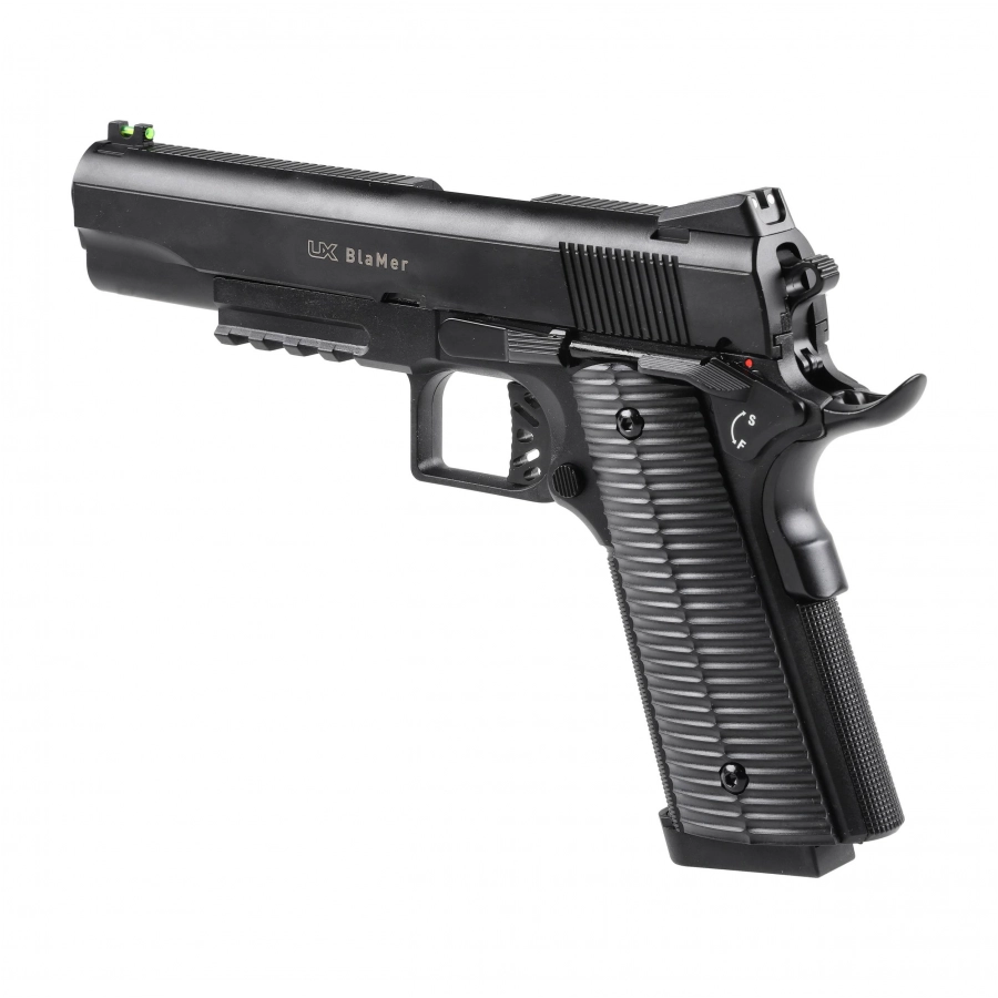 Az Umarex BlaMer CO2-patronnal működő légpisztoly kialakításában az ikonikus Colt 1911 katonai pisztolyra utal, amelyet a katonák számos fronton használtak.A hobbilövészethez tervezett légpuska nagyon jó választás lesz a sportágban kezdőknek. Könnyű kialakításának köszönhetően az Umarex pisztolyt nők és tinédzserek is kényelmesen használhatják.A n agy kapacitású tár és a lövés kezdeti 105 m/s sebessége biztosítja a lövészet örömét és a célpont hatékony eltalálását.